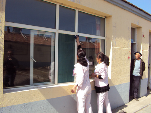 2014年4月29日,烏蘭美國際家政服務港第十一期學員43人,在學校的有序組織下,利用培訓間歇時間來到平地泉鎮幸福院,對院中居住的70余孤、寡、老、弱家庭進行衛生大掃除,從老人們欣喜、期盼的眼神中看到了黨的關懷和對烏蘭美的感謝。一位老大娘含著眼淚飽含深情地唱著 “學習雷鋒好榜樣”。讓所有人感到身上的義務和責任是那么重,學員們的熱情非常高,她們利用學校教會的技能不知疲倦熟練地干著活。從老人們的話語中她們多么希望我們經常來,學員們也從這次有意義的實踐活動得到了教育。