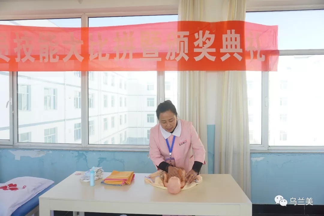 本次技能大比拼的主要比賽內容為:母嬰護理組的新生兒撫觸、產后綁腹帶;病人陪護組的壓瘡護理、測脈搏及血壓。母嬰護理組8人,病人陪護組9人,共計17人參賽。
