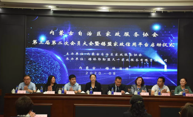 2020年8月14日,內蒙古自治區家政服務協會第三屆第二次會員大會暨錫盟家政信用平臺啟動儀式在錫林浩特市成功召開!自治區婦聯家政服務指導中心莎娜主任,自治區發改委社會發展處徐大海處長,自治區商務廳服貿處張冠女處長,錫林郭勒盟有關部門領導,內蒙古家政協會會長李冬梅及全區12個盟市的會員代表共70余人參加會議。