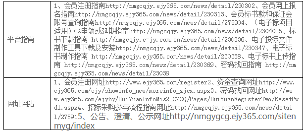 | 附件:設備清單 (2)投標人資格要求 本次招標要求投標人須具備以下資質,人員、設備、資金等方面具有相應的能力: ①須在工商行政管理部門辦理登記注冊(具有有效營業執照); ②所供貨物均須提供產品合格證,電器類產品須提供“3C”認證證書。 ③所有資質文件、報告等真實有效,不得出現偽造、涂改、借用等情形。 ④履行合同所必需的設備和專業技術能力及專業技術人員; ⑤投標設備必須滿足招標人的設備參數要求,需要提供投標設備型號品牌、各模塊性能參數、尺寸等材料和設備正面、側面、背面、平視俯視等角度彩照; ⑥具有良好的銀行資信、商業信譽和履行合同的能力,提供財務報告或銀行資信證明; ⑦在最近三年內沒有騙取中標和嚴重違約等問題,可提供承諾書或法人在“國家企業信用信息公示系統”和“中國裁判文書”網無不良記錄的打印頁; ⑧單位負責人為同一人或者存在直接控股、管理關系的不同供應商,不得參加同一合同項下的采購活動;與采購人存在利害關系可能影響采購公正性的法人、其他組織,不得參加競標; ⑨不接受聯合體 (3)招標文件的獲取 凡有意參加本項目的潛在投標人,請于2020年8月26日9時至2020年9月2日17時 (北京時間,下同),登錄內蒙古產權交易市場網站“http://www.nmcqjy.com/”進行會員注冊及辦理CA, CA申領方法及平臺操作指南請登錄(http://www.ejy365.com/newlogin)進行學習,在網上購買并下載招標文件。 提示:CA僅用于投標文件的加密和解密,CA申領在供應商系統中即可完成,建議在開標時間前10天以上制作投標文件,請注意在領購招標文件時間內下載招標文件,否則將無法參與本項目,CA售價250元/個,售后不退。 本次項目的澄清/修改/變更/重新招標公告會通過網站發布,請參加的投標人及時登錄系統查看。 招標文件(僅支持E交易下載領?。┦蹆r500元/標段,售后不退。 賬戶名:內蒙古產權交易中心有限責任公司 開戶行:中國銀行內蒙古自治區分行營業部 行號:104191014056 賬號:以下載標書系統彈出通知信息為準 串標行為認定:標書款和保證金的子帳號為隨機生成,參加同一項目的多家供應商的標書款或保證金匯入同一子賬號,視為串標行為。 (4)投標文件的遞交 投標文件遞交的截止時間(投標截止時間,下同)為2020年9月9日9時30分,投標人應在截止時間前通過內蒙古產權交易中心電子(E交易平臺)招標投標交易平臺遞交電子投標文件。 注:逾期送達的投標文件,電子招標投標交易平臺將予以拒收。采用遠程電子開標,投標人無須到達開標現場,可遠程使用CA解密。 (5)付款方式 協議簽訂之日起5個工作日內,我方向供應商支付貨款總金額的45%作為定金,并于到貨5個工作日內,供應商向我方提供全額形式增值稅普通發票,再付50%貨款,剩余5%貨款作為質保金,如無質量問題1年后付清。 3.聯系方式 采購人名稱:內蒙古烏蘭美健康服務集團有限公司 聯 系 人:姚佳秀 聯系電話:17604742599 內蒙古產權交易中心有限責任公司 地址:內蒙古呼和浩特市賽罕區阿吉泰路3號 聯 系 人: 楊艷 聯系電話: 18586095937 郵箱:nmcqcg@163.com 技術支持電話:0471-3473040(報名、標書下載上傳等)/0471-3473016(CA申請) |