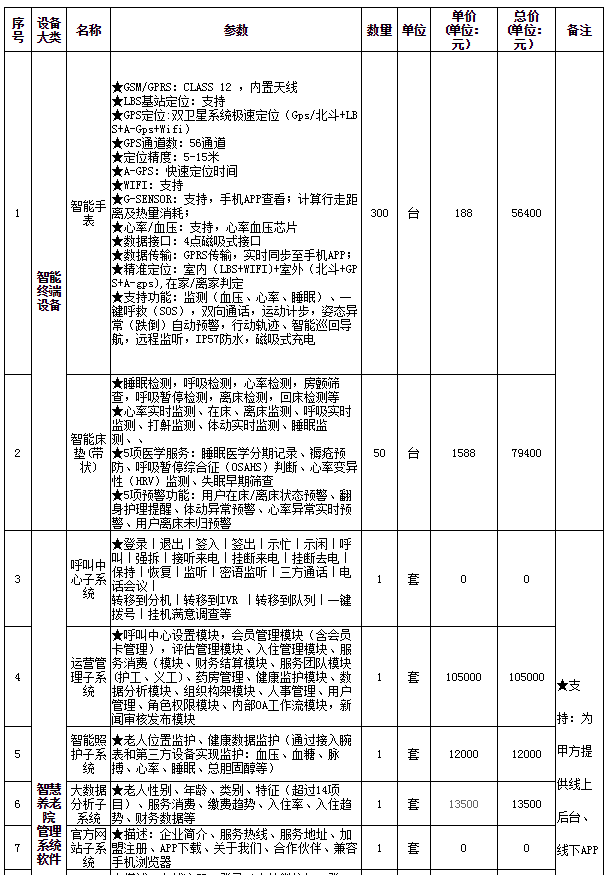 項目名稱:烏蘭美健康養老提升項目智能類采購