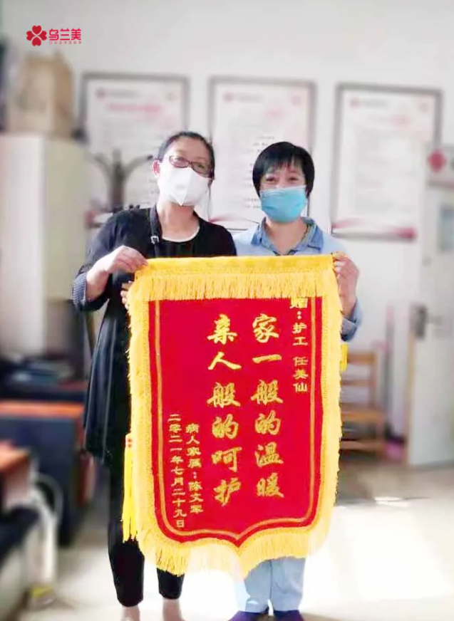 “我就是一個普通的農民,沒有什么特殊的經歷,但自從做了護工之后對我生活確實有很大的變化——增加了家庭經濟收入來源。通過將近一年在醫院陪護病人的經歷,讓我見識到了生命的堅強和脆弱,也讓我認識到生命的珍貴!”獲得錦旗的她略顯激動的說:“感謝烏蘭美健康集團為我們這些沒有一技之長的人提供就業平臺,也感謝所有在工作中幫助過我的人?,F在,我可以將所學到的知識幫助到更多需要幫助的人。”