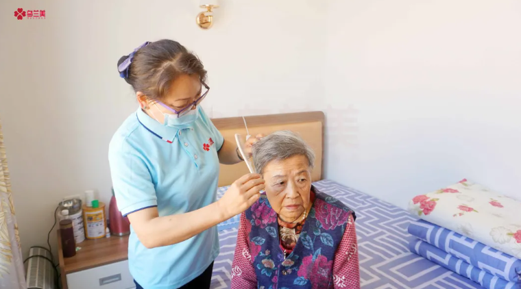 △烏蘭美養老護理員楊麗鮮正在為史玉玲奶奶梳頭