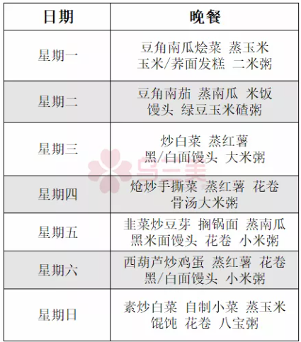 烏蘭美康養院10月18日~24日一周晚餐食譜