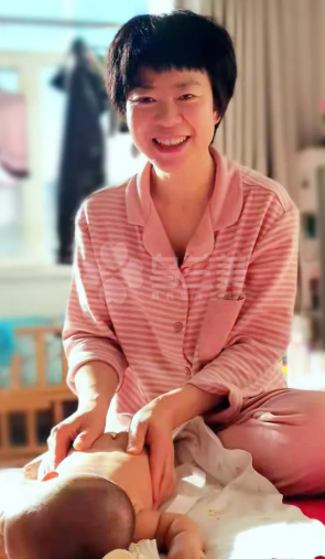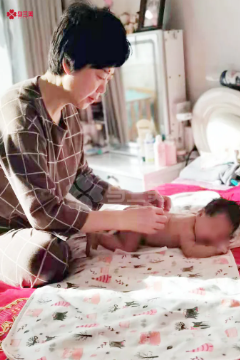 △烏蘭美醫月嫂司素芳正在給寶寶做撫觸